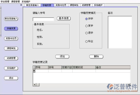 輸入需要變更的學生的學籍號,點擊查詢按鈕。查詢出學生的詳細信息