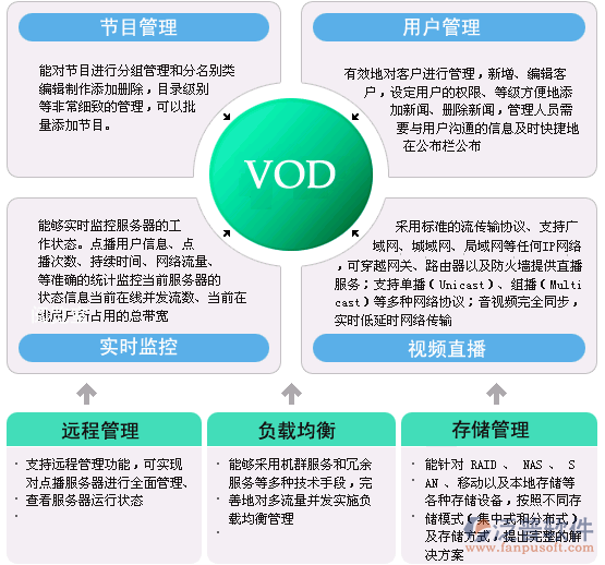 5、可按照需求做相應(yīng)的定制,具有很強(qiáng)的開發(fā)能力。如在頁面定制上,具備強(qiáng)大的用戶認(rèn)證、節(jié)目搜索、分類排列、新片預(yù)告、節(jié)目排行榜等功能;并支持與其他用戶注冊、權(quán)限認(rèn)證系統(tǒng)的接口開放等。