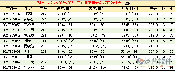 學(xué)生名次統(tǒng)計(jì)班級(jí)或全年級(jí)學(xué)生的各科和總分的班級(jí)和年級(jí)名次,可進(jìn)行多種形式總分分析