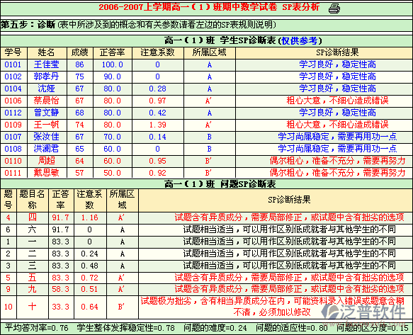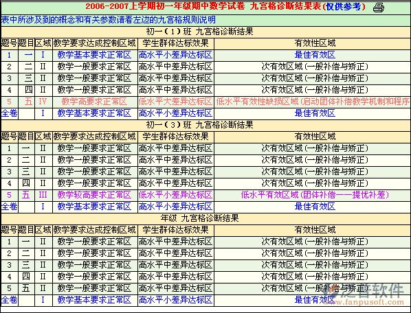 ?、诰艑m格診斷:根據(jù)各班級(jí)各題所分布的區(qū)域給出相應(yīng)的教學(xué)對(duì)策