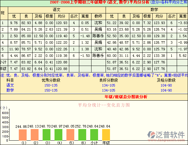 使用常規(guī)分析:群體優(yōu)率、良率、及格率、極差率、平均分、分?jǐn)?shù)段頻數(shù)、名次、多種形式總分名次、離差、學(xué)年總評(píng)、成績(jī)單