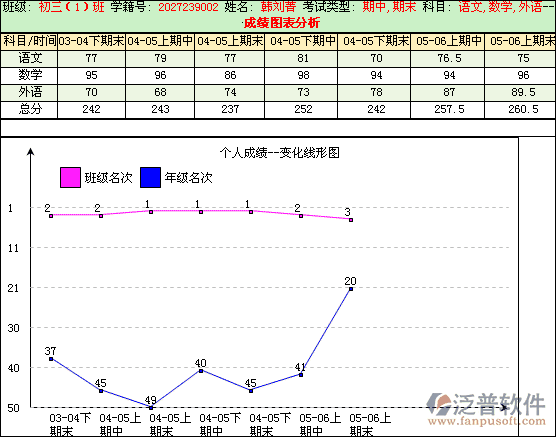 反映學(xué)生學(xué)業(yè)質(zhì)量進(jìn)步狀況,分析學(xué)生過(guò)去、現(xiàn)在、將來(lái)的學(xué)習(xí)成績(jī),及時(shí)為家長(zhǎng)提供有效的反饋信息, 并為學(xué)生學(xué)業(yè)質(zhì)量的差異性提供了有效的分析工具。對(duì)學(xué)生和家長(zhǎng)而言,準(zhǔn)確把握分析學(xué)生個(gè)體現(xiàn)狀、預(yù)測(cè)走向,從而尋求更為有效的解決方案。