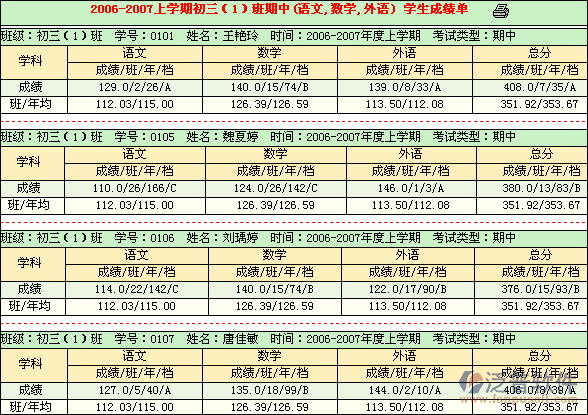 ?、蕹R?guī)分析—學(xué)生成績(jī)單:批量打印班級(jí)學(xué)生成績(jī)單,打印包含項(xiàng)可靈活設(shè)定