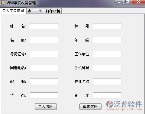 泛普軟件培訓(xùn)管理系統(tǒng)是一款專業(yè)的培訓(xùn)班管理軟件,它為培訓(xùn)班,培訓(xùn)學(xué)校等培訓(xùn)企業(yè)的管理流程而特別設(shè)計,涵 蓋了從培訓(xùn)報名管理,培訓(xùn)收費(fèi)管理,培訓(xùn)學(xué)員管理,培訓(xùn)客戶關(guān)系管理等眾多方面,是培訓(xùn)行業(yè)進(jìn)行信息化管理, 提高服務(wù)質(zhì)量和杜絕管理漏洞的強(qiáng)大管理工具,廣泛適合培訓(xùn)班,培訓(xùn)中心,培訓(xùn)學(xué)校等場合使用。