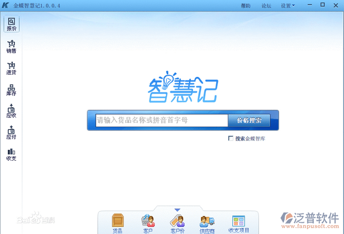 金蝶智慧記是中國(guó)第一款專門為個(gè)體商家量身打造的免費(fèi)店鋪管理軟件,他突破性的采用了客戶端本地業(yè)務(wù)管理與互聯(lián)網(wǎng)搜索及應(yīng)用相結(jié)合的方式,弱化傳統(tǒng)進(jìn)銷存軟件中復(fù)雜的會(huì)計(jì)記帳法則和繁瑣的操作,通過優(yōu)化功能和良好的界面設(shè)計(jì),以貨品價(jià)格搜索和庫存管理為基礎(chǔ),統(tǒng)一管理個(gè)體工商戶的報(bào)價(jià)、庫存、往來及收支,解決個(gè)體工商戶日常經(jīng)營(yíng)中一直存在的商品太多無法記住價(jià)格及庫存的問題,完美實(shí)現(xiàn)“精準(zhǔn)報(bào)價(jià)、清晰庫存”的核心價(jià)值;
