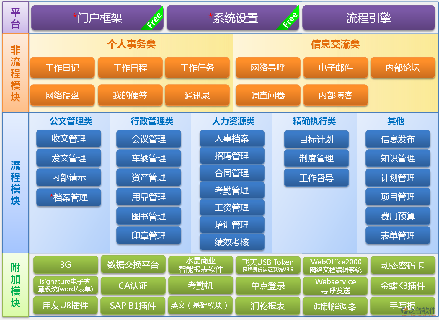 金和協(xié)同管理平臺(tái)突破傳統(tǒng)OA,實(shí)現(xiàn)企業(yè)業(yè)務(wù)運(yùn)營管理 金和C6協(xié)同管理平臺(tái)共有20多個(gè)應(yīng)用模塊,160多個(gè)應(yīng)用子模塊,涉及的企業(yè)管理業(yè)務(wù)包括協(xié)同辦公管理、人力資源管理、項(xiàng)目管理、客戶關(guān)系管理、企業(yè)目標(biāo)管理、費(fèi)用管理等多個(gè)業(yè)務(wù)范圍,涵蓋了企業(yè)業(yè)務(wù)運(yùn)營管理的各個(gè)方面,突破了傳統(tǒng)OA的管理范疇,從功能型的協(xié)同辦公平臺(tái)上升到管理型協(xié)同管理平臺(tái),并不斷的更新完善,全面支撐企業(yè)發(fā)展。