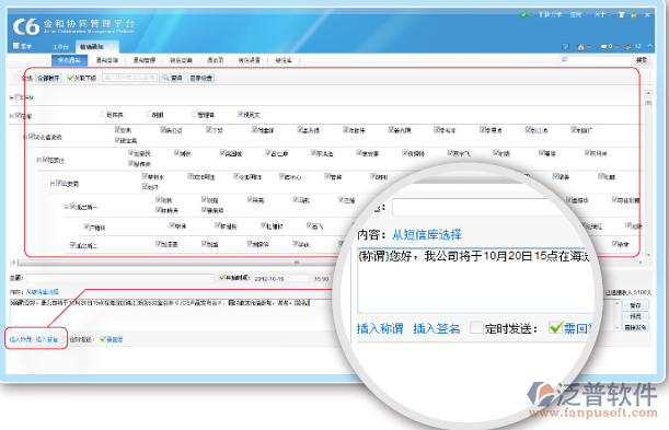 短信息:這是本系統(tǒng)中較有特色的信息交流方式,金和協(xié)同管理平臺可以利用短信息將信息即時(shí)地“推”給個人用戶,使得信息傳遞沒有延遲,也可以作為其它信息傳遞的輔助手段,比如在發(fā)送公告通知的同時(shí),可通過短信息提醒各用戶。短信息只占用很小的存儲空間。