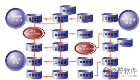 ERP里面會(huì)有以下模塊:基本資料 物倉(cāng)管理 貨倉(cāng)管理 倉(cāng)庫(kù)報(bào)表 物控管理 業(yè)務(wù)管理 技術(shù)品質(zhì) 生產(chǎn)管理 外協(xié)管理 財(cái)務(wù)管理 綜合報(bào)表 系統(tǒng)維護(hù)。雖然表達(dá)的方式不盡相同,但是所涵蓋的內(nèi)容是一樣的。