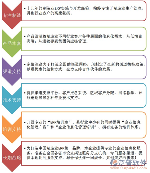 泛普將堅持誠信、共贏、溝通、服務(wù)、分享的理念,在產(chǎn)品、項目上與合作伙伴通力合作。通過總部系統(tǒng)的培訓(xùn)和考核,使渠道合作伙伴不僅是產(chǎn)品銷售者,更能夠成為產(chǎn)品的實施服務(wù)者,共同打造ERP平臺產(chǎn)品的產(chǎn)業(yè)鏈群。在客戶化實施、售后服務(wù)、二次開發(fā)等方面能夠更多的參與其中,進而使合作伙伴提高公司定位及開創(chuàng)新的贏利模式。