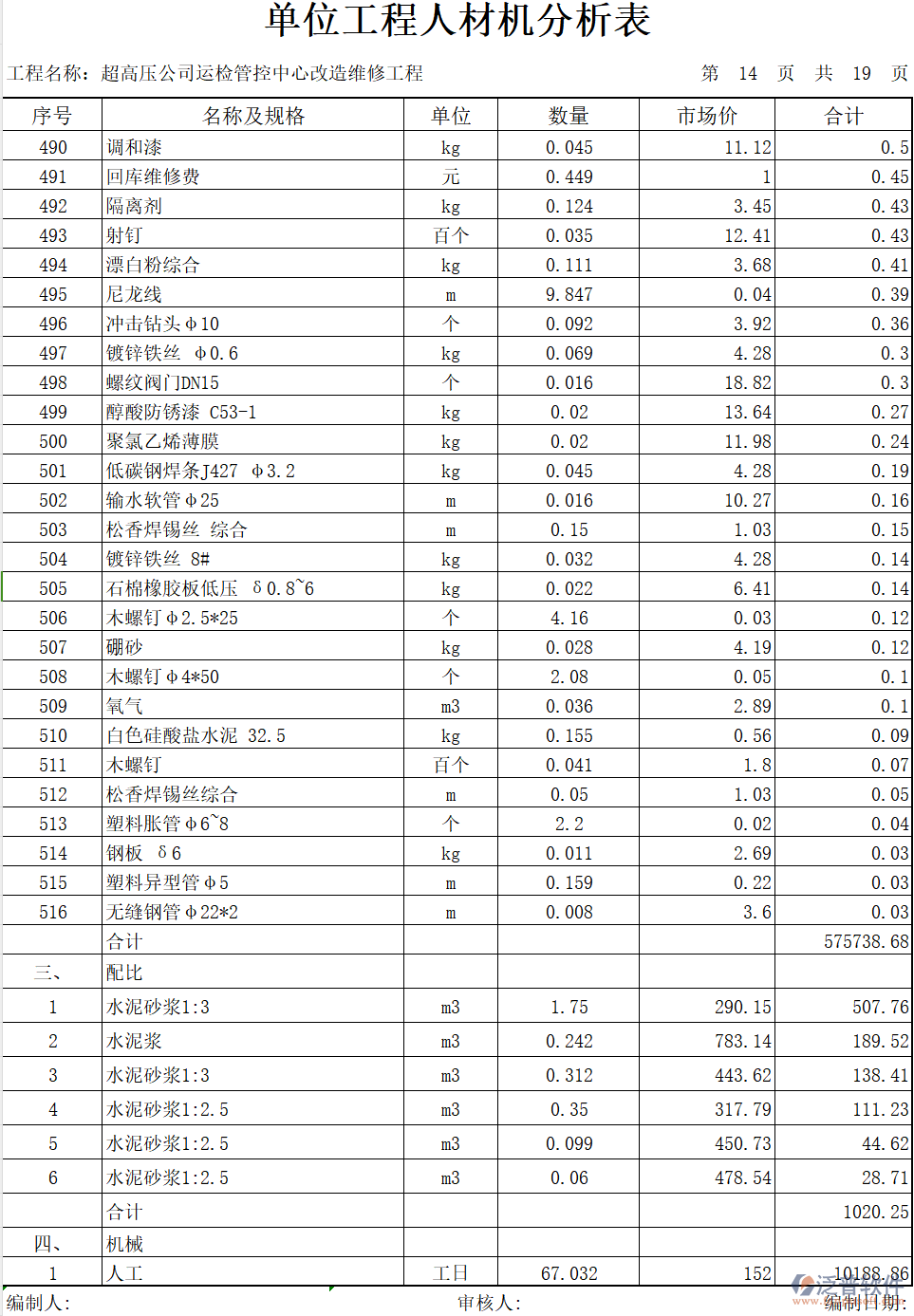 建材五金及配比材料價(jià)格與用量全覽