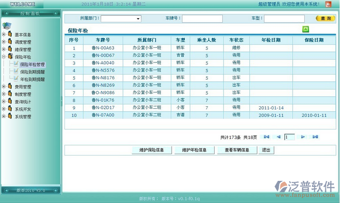 6.車輛維修管理:配件的管理、維修費用的管理、維修人員工資管理。