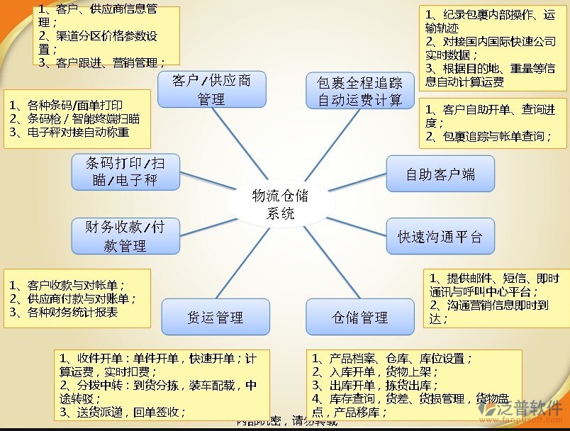 代收貨款:支持代收貨款的跟蹤處理 系統(tǒng)亮點: 業(yè)務(wù)完善:系統(tǒng)由物流模塊和辦公模塊兩大功能組件組成,物流模塊實現(xiàn)了從開單接貨、分單配置到回單簽收的全部物流環(huán)節(jié);辦公模塊實現(xiàn)了公司公告、即時通信、人員管理、業(yè)務(wù)審批等日常管理;