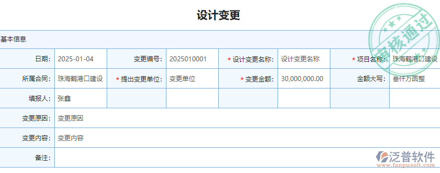 項目中有可能發(fā)生的一些變更進行登記,具體變更內容,包括金額,原因,內容,變更前后的相關文件。