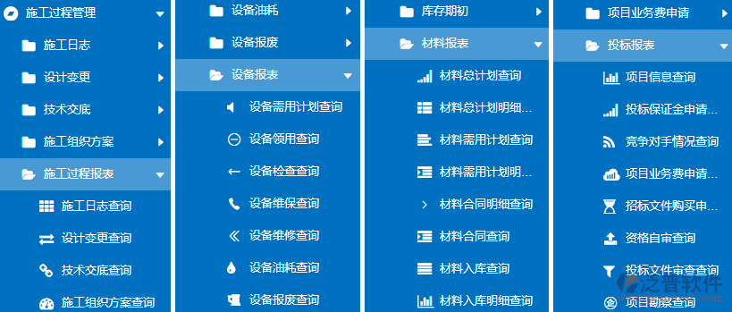 三、泛普軟件路橋工程管理系統(tǒng)的施工管理列表及內容