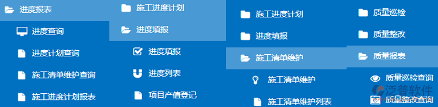 是對(duì)以上各項(xiàng)表單的匯總及查詢,包括進(jìn)度查詢、進(jìn)度計(jì)劃查詢、施工清單維護(hù)查詢、施工進(jìn)度計(jì)劃報(bào)表。
