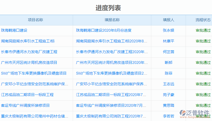 4、系統(tǒng)有自動(dòng)的總報(bào)表功能,將各項(xiàng)目的進(jìn)度情況進(jìn)行統(tǒng)計(jì),及時(shí)準(zhǔn)確的上交給企業(yè)領(lǐng)導(dǎo),領(lǐng)導(dǎo)也可根據(jù)該報(bào)表對(duì)后期項(xiàng)目管控做出相應(yīng)的決策。