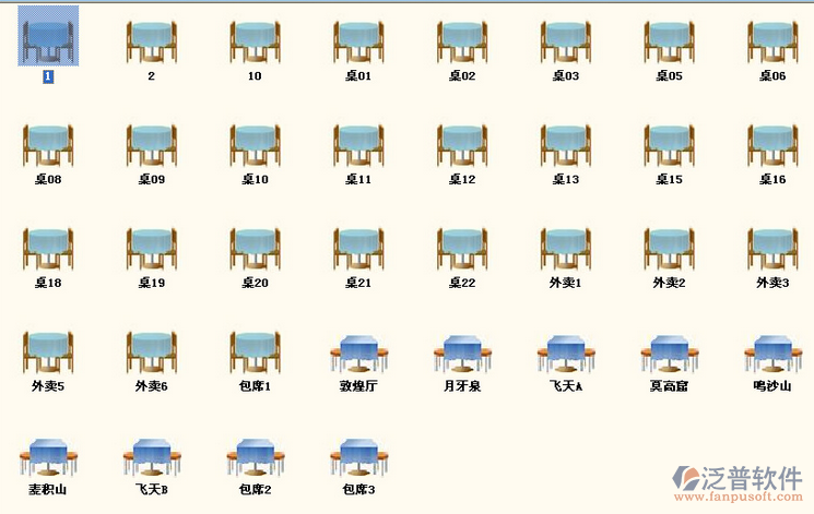 系統(tǒng)擁有的餐臺(tái)導(dǎo)航不但界面簡潔美觀,而且還能實(shí)時(shí)反映出餐廳所有餐臺(tái)、包廂的不同狀態(tài),整個(gè)界面使人一目了然。