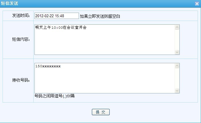 當(dāng)前位置:工程項目OA系統(tǒng) > OA系統(tǒng)平臺版 > 功能介紹 > 互動交流 > 手機短信