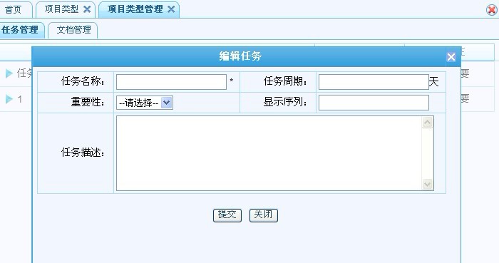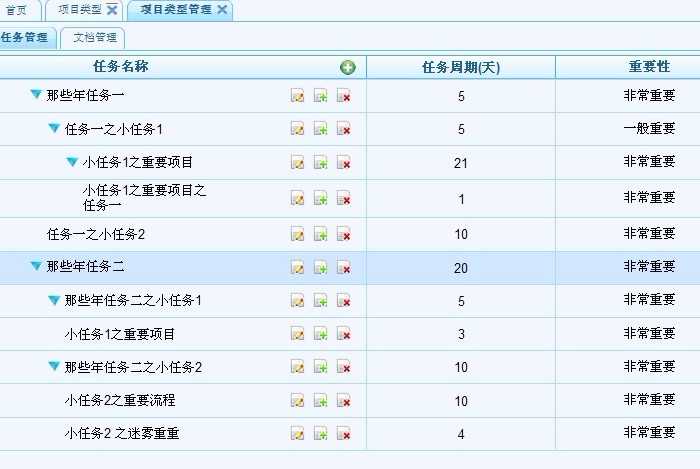 項(xiàng)目類型管理,包括任務(wù)管理和文檔管理。