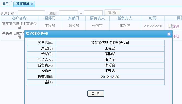 點(diǎn)擊操作區(qū)“詳情”,可查看移交部門、移交人以及具體移交時(shí)間。