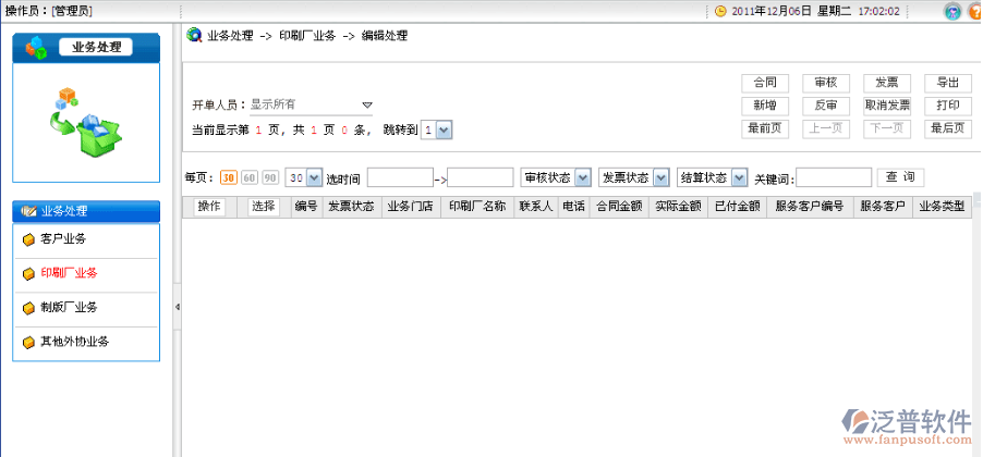泛普軟件泛普OA系統(tǒng)印刷廠管理是目前中國印刷行業(yè)信息化最實用產(chǎn)品,系統(tǒng)實現(xiàn)“報價-->交貨”的業(yè)務(wù)、生產(chǎn)、財務(wù)、倉庫等全過程日常業(yè)務(wù)管理,泛普軟件實現(xiàn)多用戶同時操作、異地辦公等功能;自動備份數(shù)據(jù)庫;在線升級等功能;一款印刷企業(yè)小型ERP產(chǎn)品!