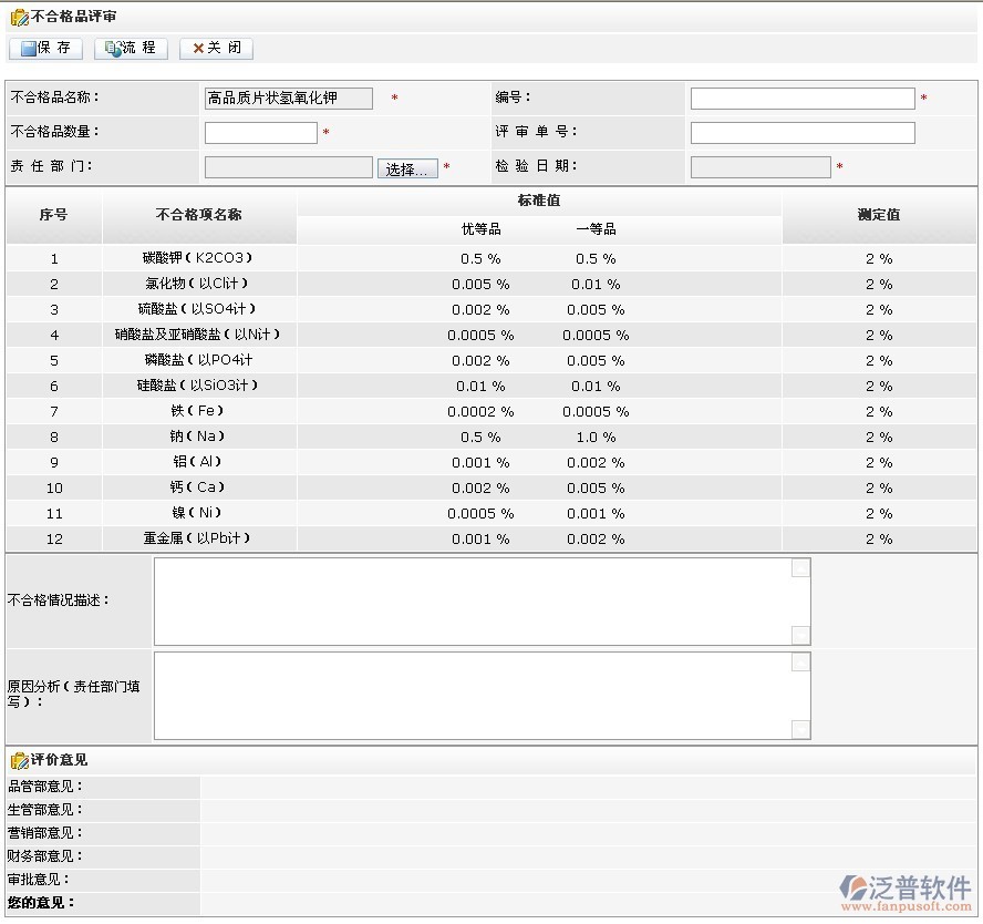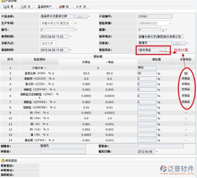 - 辦公OA系統(tǒng)可自動(dòng)判斷產(chǎn)品質(zhì)量結(jié)論,比如產(chǎn)品型號(hào)、等級,以及各指標(biāo)是否合格;