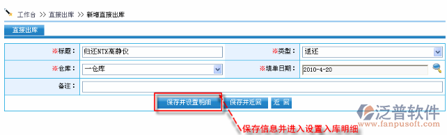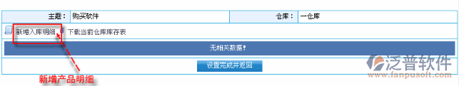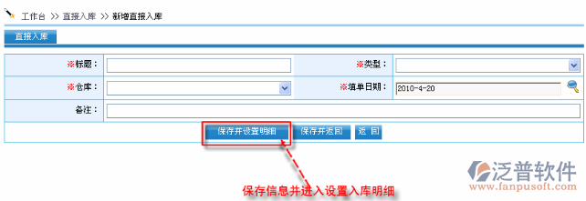 點(diǎn)擊【保存并設(shè)置明細(xì)】保存信息并進(jìn)入設(shè)置入庫(kù)明細(xì),如圖: