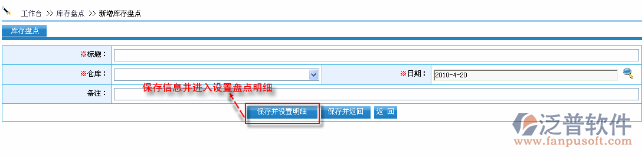 點(diǎn)擊【保存并設(shè)置明細(xì)】保存信息并進(jìn)入設(shè)置盤點(diǎn)明細(xì),如圖: