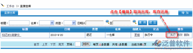 新增完明細(xì)以后,點(diǎn)擊【設(shè)置完成并返回】返回出庫(kù)列表,然后點(diǎn)擊此行數(shù)據(jù)后的【執(zhí)行】則出庫(kù)完成,如圖: