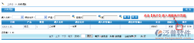 點(diǎn)擊【提交】保存數(shù)據(jù),然后返回調(diào)撥列表頁(yè)面執(zhí)行,然后點(diǎn)擊此行數(shù)據(jù)后的【執(zhí)行】完成調(diào)撥,如圖: