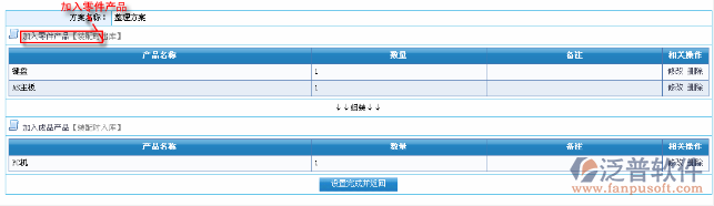 點(diǎn)擊【保存并導(dǎo)入設(shè)置明細(xì)】將設(shè)置組裝方案明細(xì),如圖: