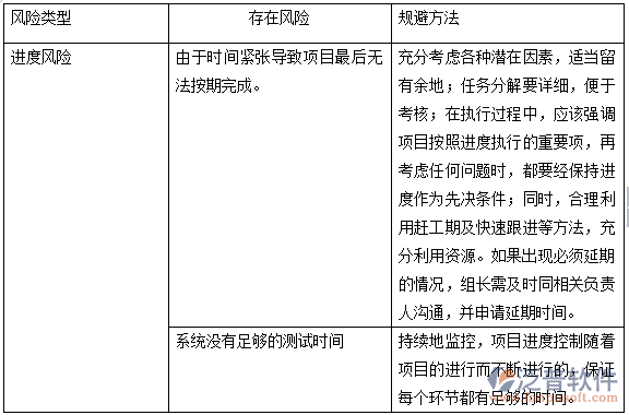項目計劃軟件本次開發(fā)過程中存在的風(fēng)險及規(guī)避方法如下表: