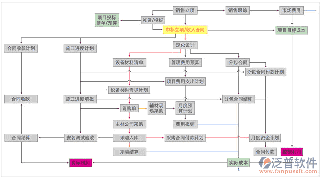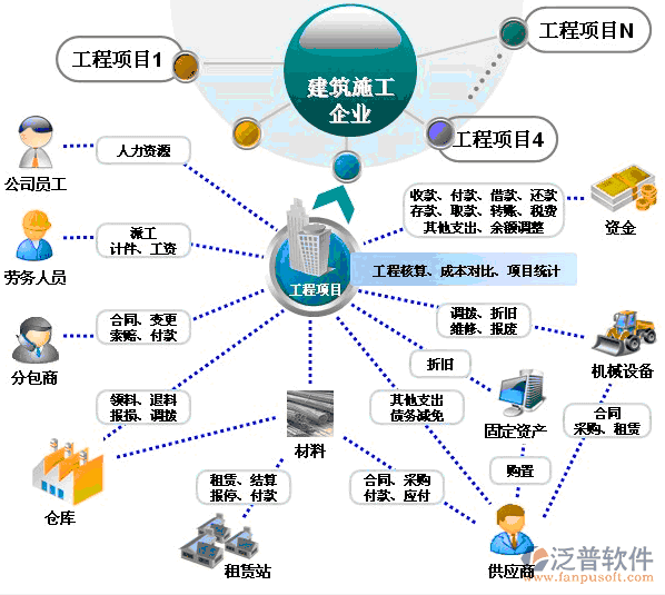 (2)核算的范圍和內(nèi)容不同。企業(yè)財務(wù)成本核算的范圍是整個建筑企業(yè),核算內(nèi)容包括企業(yè)在建項目成本及為組織企業(yè)經(jīng)營活動發(fā)生的期間費用。泛普軟件項目管理成本核算的范圍是具體工程項目,核算的內(nèi)容包括在項目施工中發(fā)生的人工成本、材料成本、施工機械成本及為組織項目施工而發(fā)生的管理成本和相關(guān)費用。