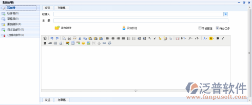 選擇人員信息,點(diǎn)擊“確定”功能按鈕,輸入其他郵件信息,信息輸入無誤后點(diǎn)擊“發(fā)送”“保存到草稿箱”功能按鈕,系統(tǒng)將郵件信息發(fā)送或保存。