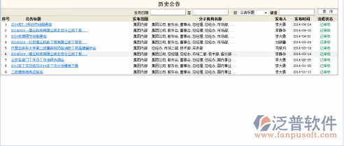 登錄項(xiàng)目管理系統(tǒng),點(diǎn)擊功能菜單,日常辦公->電子公告->歷史公告,系統(tǒng)轉(zhuǎn)入歷史公告信息列表,系統(tǒng)瀏覽窗口如下: