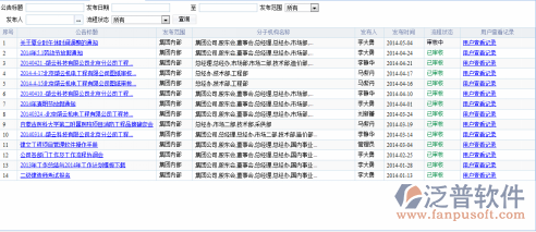 依據(jù)公告信息的發(fā)布時間、公告標(biāo)題、發(fā)布范圍等信息條件對公該信息進(jìn)行查詢查看管理;