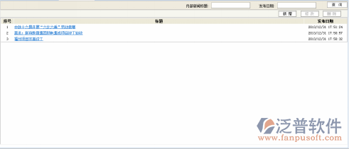 依據(jù)信息內(nèi)容的新聞標(biāo)題和發(fā)布日期對信息進(jìn)行模糊查詢操作,具體查看、新增、編輯和刪除等操作同郵件管理類同;