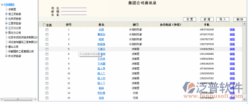 導(dǎo)入:系統(tǒng)提供了導(dǎo)入功能,在人力資源模塊如果錄入了員工的電話信息,在 這里就可以引用人力資源的信息。
