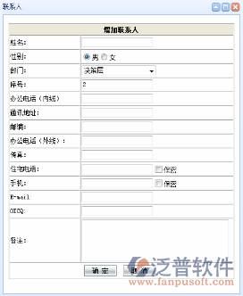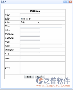 輸入聯(lián)系人的詳細(xì)信息,信息輸入無誤后點(diǎn)擊“確定”功能按鈕,聯(lián)系人添加成功。當(dāng)要?jiǎng)h除員工的通訊錄信息時(shí),在員工信息前打“