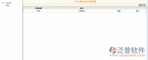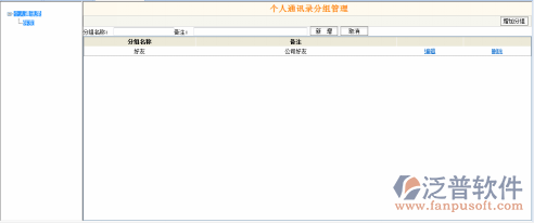 上圖-<個(gè)人通訊錄.新增>中,對當(dāng)前分組下的聯(lián)系人信息進(jìn)行新增和刪除管理,點(diǎn)擊“分組管理”,系統(tǒng)進(jìn)入如下圖:
