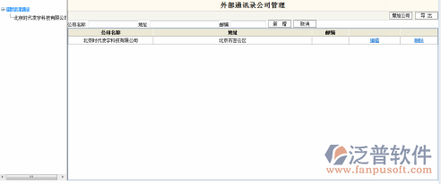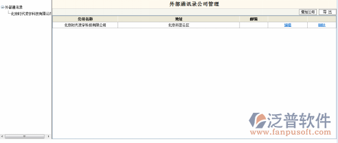 點(diǎn)擊通訊目錄樹,對各個(gè)通訊目錄下的公司進(jìn)行編輯、刪除操作,點(diǎn)擊“增加公司”功能按鈕,系統(tǒng)如圖: