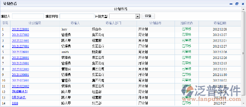 在圖-<計劃查看.瀏覽>中,可以通過輸入查詢條件查看某人的工作計劃及完成情況。
