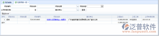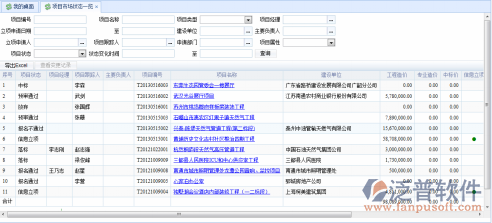在圖-<在投項(xiàng)目一覽.瀏覽>中,通過(guò)查詢條件,可以查看項(xiàng)目狀態(tài)為“投標(biāo)”的記錄的相關(guān)資料,或者導(dǎo)出到EXCEL文件中。