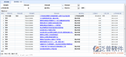 登錄項(xiàng)目管理系統(tǒng),點(diǎn)擊功能菜單樹,投標(biāo)管理->中標(biāo)管理->投標(biāo)項(xiàng)目一覽,系統(tǒng)轉(zhuǎn)入項(xiàng)目信息列表,系統(tǒng)瀏覽窗口如下: