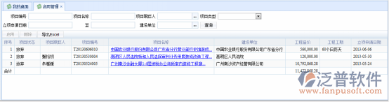 登錄項(xiàng)目管理系統(tǒng),點(diǎn)擊功能菜單樹,投標(biāo)管理->放棄管理->啟用管理,系統(tǒng)轉(zhuǎn)入項(xiàng)目信息列表,系統(tǒng)瀏覽窗口如下: