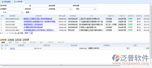 一個(gè)合同必須要經(jīng)過審核才正式生效。也就是說,其他模塊只能引用審核通過的合同。同時(shí),合同一旦被核準(zhǔn)后,合同的基本信息也就不能再進(jìn)行修改,如過合同金額有所變化,用戶必須通過系統(tǒng)的合同變更模塊來進(jìn)行金額的調(diào)整。