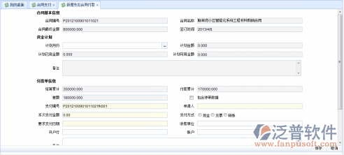 在合同管理系統(tǒng)中,“合同支付“定義合同款項(xiàng)支付的具體日期和支付金額,支付金額的匯總不能大于結(jié)算金額;合同支付金額累計(jì)≤該合同結(jié)算金額累計(jì)。合同款項(xiàng)必須有計(jì)劃性的支付。