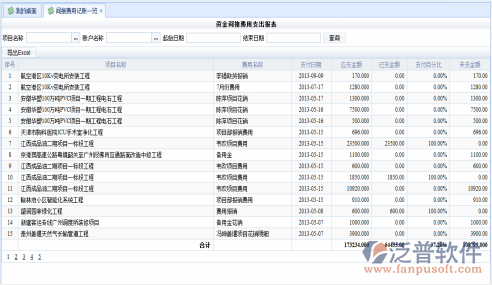 根據項目間接費支付的不同,羅列出項目的間接費用支付情況,供用戶查看。