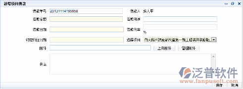 在圖-<項目借款.瀏覽>中,在借款管理列表中,可以看到項目賬戶的詳細信息,選中項目賬戶,點擊借款管理列表下面的“新增”,出現(xiàn)如下界面: