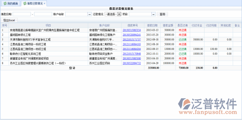 在圖-<借款還款情況.瀏覽>中,通過輸入查詢條件,查看項目的借款還款情況,并可以導出到Excel或Word文件中。